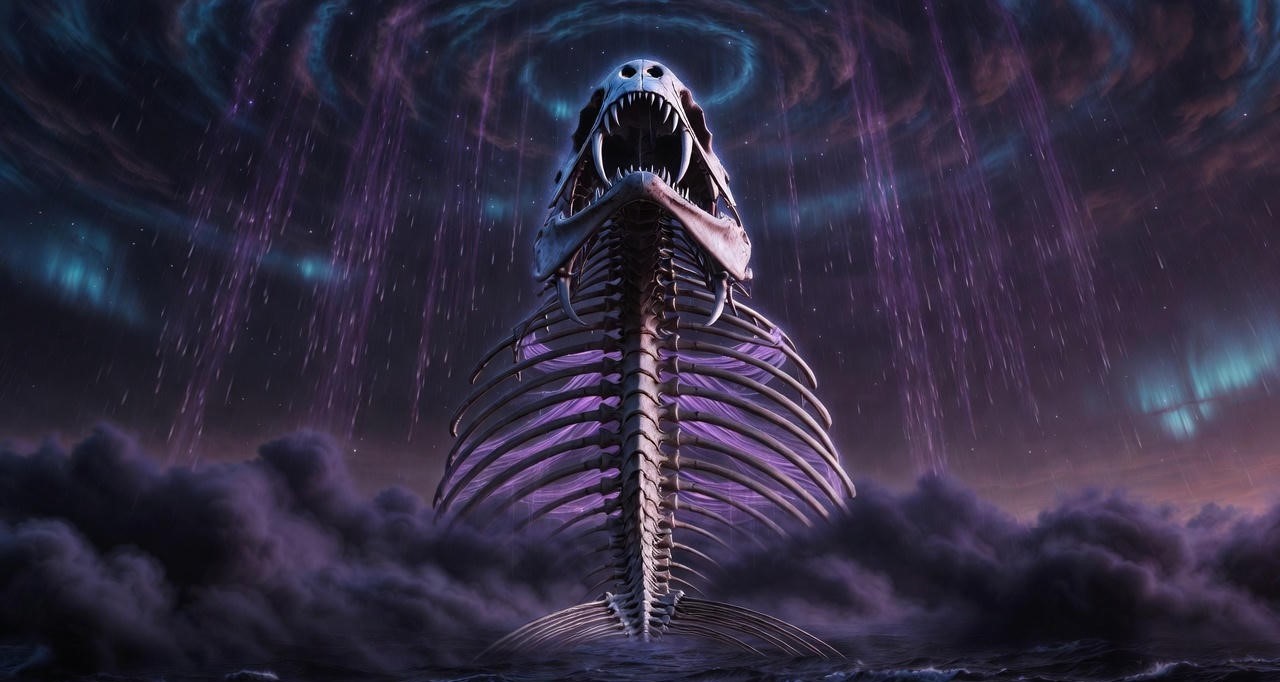 「暴食」+「怠惰」的軍艦鯨:時而浮現戰場,14m的白骨巨鯨,骨骸之間縈繞黑霾。